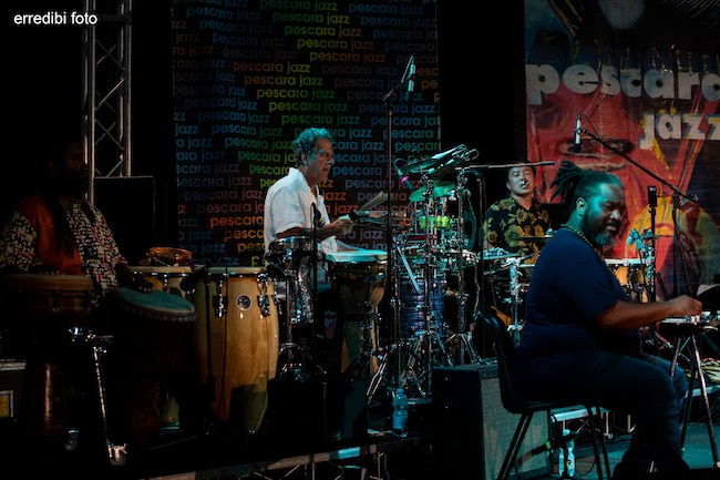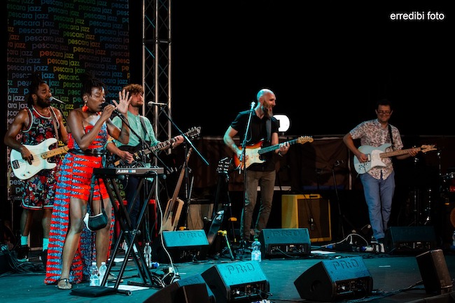 PESCARA – Grande successo per il nuovo progetto creato dal fondatore e leader degli Snarky Puppy, Michael League. Nelle foto a cura di Roberto di Blasio ripercorriamo la serata carica di energia con la giovane cantante Malika Tirolien a trascinare gli altri sette musicisti con la sua voce e danzando. Arrivano da quattro differenti continenti e si sono amalgamati al meglio nonostante molti di loro non si erano mai incontrati prima.