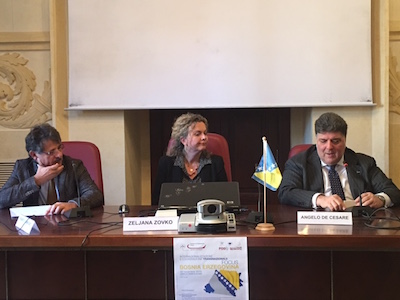 In apertura di riunione, Roberto Di Vincenzo, presidente della Camera di Commercio di Chieti, ha sottolineato l’importanza dell’evento in vista di una collaborazione con la Fiera di Mostar e la locale Camera di Commercio e per le opportunità legate alla nuova programmazione comunitaria per i paesi transfrontalieri. Le aziende speciali dell’Ente camerale, Agenzia di Sviluppo e ASPO per la portualità – ha affermato Di Vincenzo – stanno già operando in vista della definizione di opportunità reciproche. S.E. Zeljana Zovko, ambasciatore della Bosnia-Erzegovina, nella sua prima uscita pubblica in Italia, ha presentato le crescenti dinamiche di sviluppo socio economico che caratterizzano il suo Paese, rimarcando la positiva collaborazione economica tra Bosnia e Italia che rappresenta il quarto paese per scambi commerciali. Angelo De Cesare, presidente dell’Agenzia di Sviluppo, Azienda Speciale della Camera di Commercio di Chieti, ha lodato l’iniziativa per le importanti collaborazioni economiche e produttive attivabili con la Bosnia-Erzegovina necessarie anche per la creazione di una rete per i progetti comunitari.