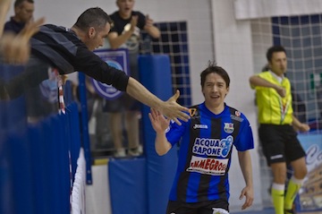 IL MATCH – Pochi secondi e Zanchetta fa il rodaggio ai suoi reattori scappando a destra e provandoci con un tiro di punta sul palo lontano. Dopo 2’ Merlim calcia addosso a Zaramello e pareggia il conto delle occasioni. La partita si scalda subito: prima del 3’, Chaguinha fa un numero d’alta scuola sulla trequarti, mette a sedere Canal e scarica un bolide alle spalle di Cavicchio: 1-0. Pedotti prova subito a rimettere in corsa i suoi, ma il portiere angolano riesce a neutralizzarlo. La reazione dei veneti è determinata: Honorio e compagni schiacciano i nerazzurri costringendoli all’uscita con lanci lunghi. Proprio il numero 9 dei Lupi fa partire il passaggio giusto verso Merlim in occasione del gol del pari a metà tempo. Sono pochi i momenti di tregua.Dopo 13’13’’ Cavicchio e Rogerio salvano involontariamente la porta deviando in angolo la punizione letale di Zanchetta. Rischia grosso la squadra di Bellarte al 15’: un disimpegno errato di Delpizzo mette Rogerio davanti alla porta, il pivot sbaglia completamente l’esecuzione da due passi. Altri 30’’ e Caetano ha la palla del raddoppio, Cavicchio si esalta con la gamba di richiamo e intercetta. Pallone in angolo, sulla battuta Zanchetta stoppa e salta in tunnel un avversario e poi Cavicchio, Pedotti sulla linea evita il ko. La palla migliore però deve ancora arrivare: a 20’ dalla sirena, Hector leviga il pallone da fenomeno e serve a centro area Coco Schmitt, tutto solo: il suo tocco è troppo debole e Cavicchio riesce a intuire la direzione del pallone.