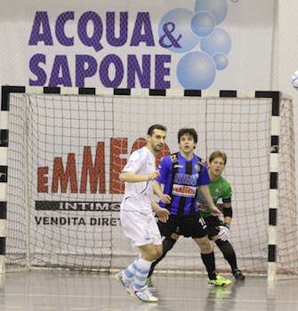 La squadra di Bellarte soffre la voglia di giocarsela degli avversari, che a sorpresa passano dopo 7’ con Mocellin, servito dal genio di De Nichile. Ancora Mocellin firma il raddoppio a 4’ dalla conclusione, ancora su assist dell’esperto pivot reatino. Rete subita dal giovane Tatonetti, che nel frattempo era entrato in campo per rimpiazzare l’espulso Zaramello. I nerazzurri tirano fuori l’orgoglio e trovano il gol che riapre la partita: lo firma Murilo con un tiro di punta in diagonale. Si torna negli spogliatoi nell’incertezza: il pensiero è ancora sulla rimonta da tentare nella ripresa e ai risultati che arrivano dagli altri campi, che decreteranno il nome dell’avversaria nei quarti dei play-off.