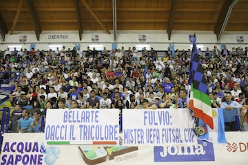 La ripresa, con Morassi in porta e un Caputo nervoso è una salita per i veneti, che insistono con tutta laloro qualità e riaprono i giochi dopo tre minuti e mezzo con il rasoterra di Merlim, pasciato entrare centralmente dai nerazzurri. L’Acqua&Sapone allora ci mette la sua intelligenza e si chiude nella sua metà campo, aspettando l’errore. Che arriva, inevitabile, dopo 8’: Leitao felino nel captare il passaggio orizzontale di Caputo, ruba palla e calcia. Il 5-1 è una valanga sulla testa dei Lupi, che provano a sorprendere Mammarella solo con tiri (sempre pericolosi) da fuori. Bellarte ordina di gestire palla e colpire ad ogni occasione. Cuzzolino non se lo fa ripetere due volte: scardina un pallone a Ercolessi, salta secco Morassi e appoggia nella porta vuota la palla del 6 a 1. Al Palaroma si canta “vinceremo il tricolor”. Ma è ancora presto: mancano le tappe di Bassano del Grappa, in programma 2 e 4 giugno al PalaBruel. L’ex coach del Montesilvano gioca la carta Follador (un altro ex nerazzurro) portiere di movimento per salvare la serata: prima Bertoni segna il 2-6, poi Waltinho scavalca Mammarella con un tocco vellutato da posizione impossibile e Chaguinha s’immola per ricacciarla. Poi è sofferenza, resistenza, stanchezza, difesa. E gioia, infinita.