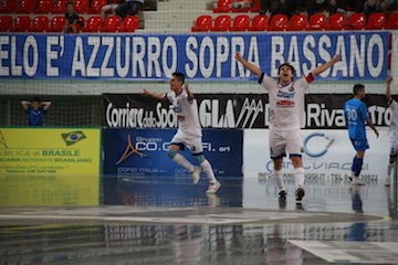IL MATCH – Partenza sprint, poi sofferenza e orgoglio. L’inizio è tambureggiante, con Chaguinha e Leitao ritrovati fin dalla prime giocate. Dopo 4’, uno svarione consente ai veneti di sfiorare il vantaggio (Canal fuori a porta vuota). La ripartenza nerazzurra è letale: palla rubata a metà campo, superiorità numerica con Leitao che serve Calderolli in area per il vantaggio ospite (4’17’’). L’effetto-tifo (sono circa cinquanta i tifosi saliti dall’Abruzzo) si sente. Ma la partita s’incendia e l’euforia evapora presto, mentre i padroni di casa ruggiscono: tunnel di Merlim sul diretto avversario, Honorio segue il pallone e di prima fa schizzare il pallone all’incrocio per il pari (7’37’’). La partita torna in perfetto equilibrio, con le squadre attente a rischiare poco e con qualche contatto spigoloso di troppo. Il numero di Zanchetta al 10’ sulla corsia destra con viene finalizzato per poco da Calderolli, mentre il taglio intelligente di Nora dalla propria metà campo finisce esattamente sull’incrocio giusto per Canal, che calcia di prima e fulmina Mammarella (12’30’’). Un minuto dopo Caputo fallisce incredibilmente la palla del tris veneto. I nerazzurri sbandano, l’unico a tenere il timone senza tremare è Calderolli, leader silenzioso. Ma non basta, serve qualcosa in più. Bellarte sa cosa: Coco portiere di movimento, subito. E la mossa è giusta. Con la superiorità, arriva immediato il pari di Murilo, a uno e mezzo dall’intervallo. Non eccelsi, ma sempre vivi e orgogliosi, i ragazzi del patron Barbarossa.