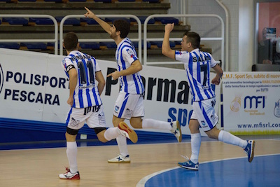 IL MATCH – Il Pescara parte meglio, tentando di sorprendere in avvio, come accaduto in Winter Cup, i nerazzurri. Nei primi cinque minuti di gioco si possono contare almeno altrettante occasioni per i delfini che con Rogerio, Nicolodi, Leggiero per due volte e infine con Salas, sfiorano il vantaggio. Dall’altra parte è invece il solo Cavinato a mettere i brividi al rientrante Capuozzo, che con una parata d’istinto nega il gol all’angelese. Piano piano però gli uomini di Bellarte mettono da parte la tensione iniziale e cominciano a riguadagnare campo. La partita si fa intensa pur restando sempre nei limiti di una correttezza esemplare. Gli arbitri per la verità non lasciano correre nulla, fischiando tanto ma non senza costrutto. L’intento è quello di prevenire qualsiasi eccessiva durezza e a 5′ dalla sirena della prima frazione, entrambe le squadre toccano quota 5 falli. Ercolessi e Leggiero hanno altre due buone occasioni ma le loro conclusioni si perdono sul fondo. Canal evita Mammarella in uscita con un lob che però trova l’estrema difesa di un nerazzurro sulla linea di porta. È però Leitao a procurare un sussulto alle coronarie dei pescaresi, scagliando un tracciante da distanza siderale che va a stamparsi sul palo alla sinistra di Capuozzo e a rimbalzare quasi a centrocampo. Si va al riposo sullo 0-0 ma il risultato in bianco è casuale.