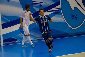 L MATCH – É stato sufficiente un time out chiamato dopo 4 minuti dal tecnico biancazzurro per svegliare i suoi da un avvio negativo. Due gol da manuale in soli tre minuti e partita subito incanalata sul giusto binario. Il primo lo segna in tap in il solito Canal che da due passi sbatte la palla in rete su assist di Rescia e il secondo lo realizza Ricardo Caputo che concretizza un sontuoso coast to coast di Javier Salas. Il Corigliano ci prova a reagire ma si vede lontano un miglio che non è serata per i calabri. Il più incisivo tra gli ospiti è Pereira, pirata di lungo corso del futsal italico, che però trova sulla sua strada un Capuozzo impeccabile che col gambone gli devia un paio di conclusioni niente male. Vieira, vice cannoniere del campionato, non è proprio in giornata, Caputo lo marca senza troppo affanno e lui si spegne progressivamente senza colpo ferire. Si procede a sprazzi con il Pescara che in chiusura di primo tempo si divora un gol con Rogerio, che manda alto sotto misura.