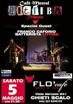 CHIETI – Grande evento questa sera al Flò Cafè di Chieti: i Cafè Mexcal, una delle migliori tribute band dei Litfiba, saranno accompagnati in concerto per l’occasione da Franco Caforio, ex batterista del gruppo fiorentino. L’evento è organizzato da Anthony Iacone, Art Director delle serate del noto locale teatino.