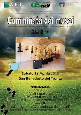 SAN BENEDETTO DEL TRONTO – Dopo la prima tappa che si è svolta ad Acquaviva sabato 18 aprile è in programma il secondo appuntamento con le “Camminate dei musei”.L’iniziativa è organizzata dalla Cooperativa DSA, sostenuto dalla Regione Marche e organizzato in collaborazione con l’Associazione Piceno Turismo, con l’AGCI Marche, con l’U.S. Acli Marche, con l’ASD Truentum e con l’Associazione ACCT.