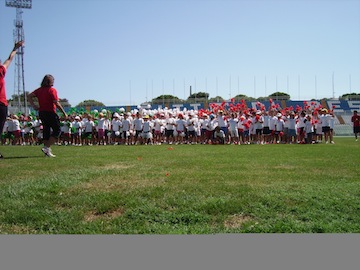 PESCARA -“Lo Sport non va in vacanza” a Pescara ma sbarca allo stadio “Adriatico-Cornacchia” . Oltre 800 studenti delle scuole elementari del pescarese hanno reso il campo un vero spettacolo con una partecipazione gioiosa ed una bella coreografia.