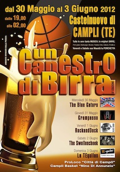 CAMPLI (TE) – La Pro Loco “Città di Campli” in collaborazione con la società sportiva Campli Basket “Nino Di Annunzio” ripropone, dopo il grande successo della passata edizione, la manifestazione “UN CANESTRO DI BIRRA”. La manifestazione si svolgerà da oggi, 30 Maggio a Domenica 3 Giugno, dalle ore 19.00 alle ore 2.00, presso la piazzetta di Castelnuovo di Campli, situata a circa duecento metri dal centro storico del paese. Le birre proposte in ogni serata dell’evento saranno una Bionda (HB Traunstein), una bianca (Blanche de Namur), una rossa (Wieze Rouge) e come birra “speciale” (La Chouffe). Inoltre sarà possibile degustare, primi piatti, Hamburger e patatine, Wurstel e patatine, Calzoni, Frittelle e nelle giornate di Venerdì e Sabato sua maestà la porchetta.