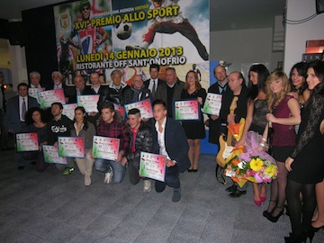 I premi sono stati ricevuti personalmente dal presidente Luciano Campitelli e la giuliese Debora Sbei. Attestati anche per la “MMA Submissions” di lotta, al giovane capocannoniere regionale Renato Cerasi in forza al Chieti, ad Alessio Spezialetti del “Pedale Santegidiese”, alla campionessa regionale di tennis Franca D’Eugenio di Roseto degli Abruzzi, a Gloria Casalino di Pescara (equitazione) ed a Mario Ricci ed Ezio Mucci di Martinsicuro per la maratona (premio alla carriera). Ancora Nello Crosta per la boxe, il circolo tennis di Civitella del Tronto, il Notaresco Calcio ed il Villa Fiore Calcio. Premio al generale Alessandro Della Posta, a Marco Ferracatena (campione italiano di pesca con esca finta), al Basket Campli, a Valter Amante (premio alla carriera) ed alla Scuderia Ferrari di Villa Rosa (uno dei club d’Italia con maggior numero di iscritti) che tra poco festeggerà il decimo anno di attività. L’appuntamento con lo sport è stato chiuso con i premi per il giuliese Alessio Piccioni (campione italiano di Triathlon), Marvin Di Rocco (boxe), l’associazione Vogatori di Martinsicuro e la Globo Teramo (pallamano femminile).
