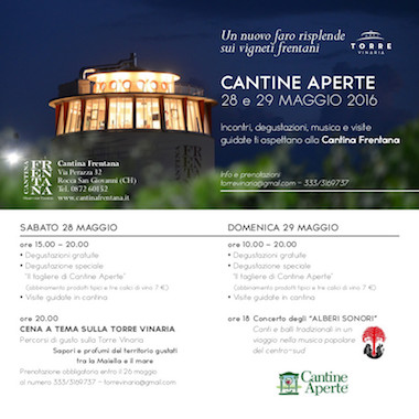 ROCCA SAN GIOVANNI (CH) – Anche Cantina Frentana di Rocca San Giovanni aderisce all’evento “Cantine aperte”, promosso dal Movimento Turismo Vino in tutta Italia che avrà luogo il 28 e 29 maggio prossimi.
