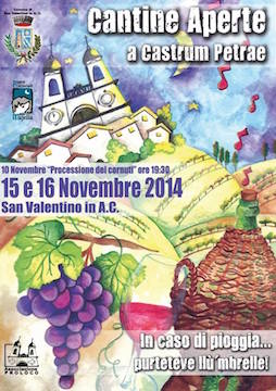 SAN VALENTINO IN ABRUZZO CITERIORE (PE) – Sabato 15 e domenica 16 novembre a San Valentino appuntamento con la 15esima edizione di “Cantine aperte a Castrum Petrae”. Ben due giornate dedicate alla festa del vino più famosa d’Abruzzo. Non solo sabato al via dalle ore 19 fino alle 2 con arte, musica e poesia ma anche domenica dalle 10 alle 22 con l’antico borgo che si animerà tra musici, artigiani, cantastorie, giocolieri e, ovviamente, le oltre venti cantine che rimarranno aperte per l’intero giorno.