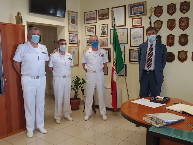 La cerimonia si è svolta presso la sede della Direzione Marittima in forma ridotta, davanti ad una rappresentanza del personale militare e civile