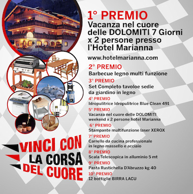 1° PREMIO: Vacanza nel cuore delle Dolomiti 7 Giorni per 2 persone presso l’hotel Marianna di Rocca Pietore-Marmolada
