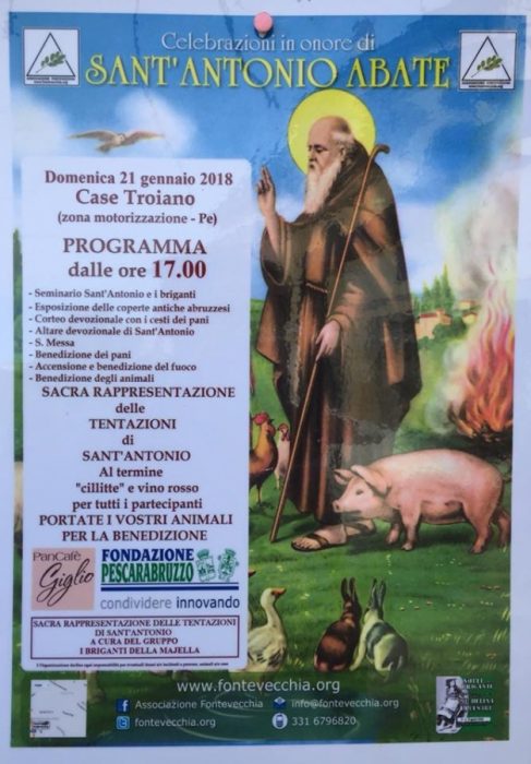 SPOLTORE (PE) – Si svolgerà domani, domenica 21 gennaio, l’ottava edizione della tradizionale celebrazione del Sant’Antonio promossa dall’Associazione Fontevecchia, la rappresentazione dell’eterna lotta del santo che, contrastando le tentazioni, vince il diavolo, accompagnato dai canti tradizionali abruzzesi.