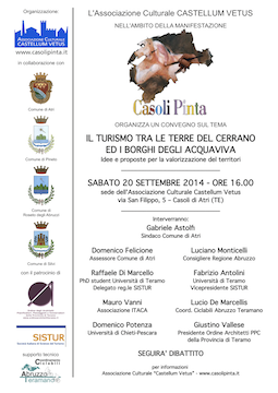 Al termine della manifestazione “Casoli Pinta”,l’associazione Castellum Vetus organizza, sabato 20 e domenica 21 settembre, due eventi per la valorizzazione del territorio atriano e