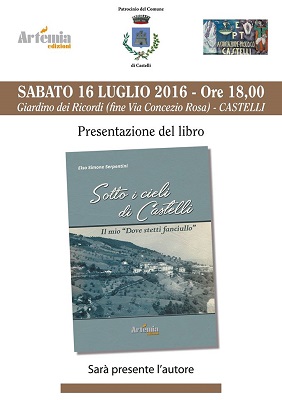 Il libro sarà presentato a Castelli, nel Giardino dei Ricordi (fine via Concezio Rosa), sabato 16 luglio 2016 alle ore 18.00, per iniziativa della Pro Loco di Castelli e di Artemia Edizioni, con il patrocinio del Comune di Castelli. Sarà presente l’autore.