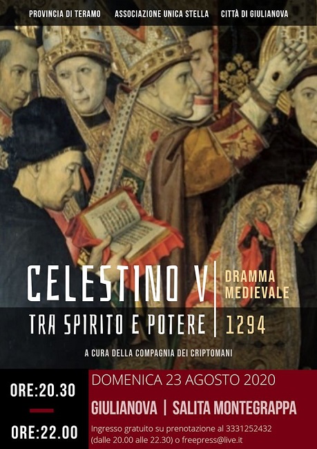 GIULIANOVA (TE) – Il dramma medievale dal titolo “Celestino V tra spirito e potere”, ripercorre gli ultimi anni di vita di Pietro da Morrone, il famoso papa del “gran rifiuto” citato da Dante nella Divina Commedia.