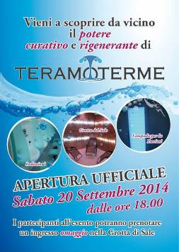 ativa.Teramo Terme sarà presentata al pubblico con una cerimonia di apertura ufficiale che si svolgerà domani,sabato 20 Settembre a partire dalle ore 18.00,nella sede di Via Cesare Beccaria, 12 in località Petriccione a Castellalto -Teramo .All’interno ogni trattamento attinge ai suoi principi attivi e viene usato sapientemente per la cura dei più comuni disturbi della respirazione.