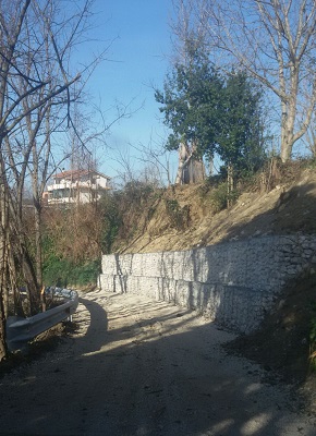 L’intervento, effettuato da una ditta locale, ha previsto la realizzazione di gabbioni in pietra che sono stati posizionati per il contenimento del terreno franato,la collocazione di un paracarro e l’ampliamento della carreggiata che è stata portata da 2,50 a 3,30 metri.