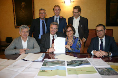 A sottoscrivere l’accordo istituzionale il presidente Renzo Di Sabatino, la vicepresidente delle Marche, Anna Casini; l’assessore regionale abruzzese, Dino Pepe; il presidente della Provincia di Ascoli, Paolo D’Erasmo; il sindaco di Martinsicuro, Paolo Camaioni e l’assessore comunale di San Benedetto, Luca Spadoni. Presenti anche il consigliere delegato all’ambiente per la Provincia di Teramo, Massimo Vagnoni e il consigliere delegato alla viabilità, Mauro Scarpantonio.