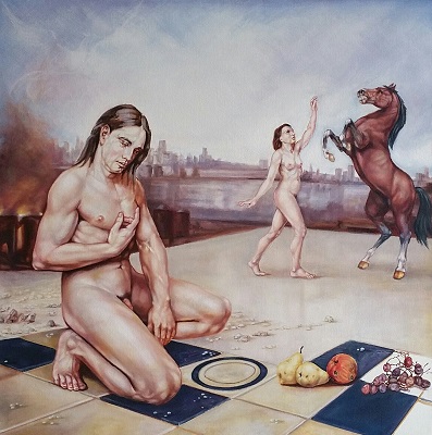 al XLIX Premio Vasto mostra di arte contemporanea con tre opere olio su tela Battaglia,Psiche e La Fenice.