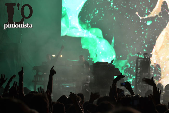 É l’elettronica a farla da padrone con Tom Rowlands e Ed Simons protagonisti del dj set e con luci ed effetti speciali a catturare lo sguardo dei fans grazie alla sapiente regia di Adam Smith. Dai laser psichedelici (in “Sometimes I Feel So Deserted”) alle proiezioni di immagini talvolta dai toni inquietanti, ma che hanno l’obiettivo comune di far ballare.
