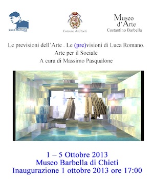 CHIETI – Dal primo al 5 Ottobre 2013 la Pinacoteca Barbella ospita la mostra d’arte intitolata “Le (pre)visioni di Luca Romano”, promossa della Fondazione Luca Romano. Partendo dal lavoro artistico di Luca Romano, scomparso tragicamente nel 2007, altri pittori si accosteranno al cammino tracciato dall’artista nell’immaginare paesaggi e dimensioni provenienti direttamente dal futuro.