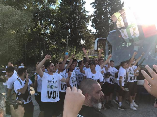 CHIETI – Promozione in serie D per il Chieti Calcio, che con la vittoria di oggi pomeriggio a Capistrello per 3 a 0, si aggiudica il passaggio di categoria. La squadra è stata accolta dai tifosi e dai cittadini davanti allo stadio Angelini, al rientro dalla partita.