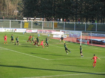 Dieci minuti più tardi sono i calabresi a sfiorare il terzo goal con un preciso colpo di testa di Sirignano che esce di pochissimo. Quando nessuno ci spera più ad un minuto dal termine arriva la punizione capolavoro di Sabbatini che fa esplodere l’Angelini: è la rete del sospirato 2-2. Nei minuti di recupero Fiore, su suggerimento di Lacarra, prova la magia da fuori area, ma Mengoni nega la gioia al giocatore neroverde con una prodigiosa deviazione in angolo. Finisce in pareggio: per il Chieti un risultato prezioso ed ora la classifica dice 45 punti e piena zona playoff, dunque basta nascondersi. La squadra di Paolucci è lì e se la giocherà fino alla fine.