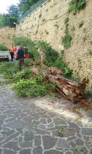 Il vento forte la causa dell’abbattimento di un grosso albero di acacia. Di Felice: “Intensificheremo le verifiche già programmate sul patrimonio arboreo cittadino”
