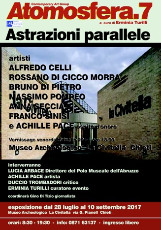 CHIETI – La mostra Astrazioni parallele a cura di Erminia Turilli sarà inaugurata il 28 luglio, alle ore 18.00, presso il museo archeologico La Civitella di Chieti e si chiuderà il 10 settembre 2017.