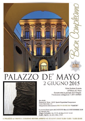 CHIETI – Anche quest’anno la Fondazione Carichieti vuole festeggiare il 2 giugno, giorno importantissimo della Festa della Repubblica, ma anche compleanno del Palazzo de’ Mayo, che ha aperto le porte al pubblico proprio tre anni fa con visite guidate gratuite all’intero complesso edilizio e alle sue collezioni d’arte che partiranno ogni ora sin dalle 10 di mattina. La visita è gratuita e la prenotazione è obbligatoria (T. 0871/359801).