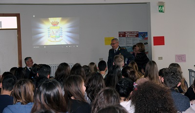 CHIETI – Ieri 23 febbraio, presso il Liceo Classico “A. Volta”” di Ortona (CH) si è tenuto un incontro delle Fiamme Gialle con gli studenti, durante il quale il Col. t. ISSMI Vittorio Mario Di Sciullo, Comandante Provinciale di Chieti, ha discusso di cultura della legalità economica, nell’intento di far maturare la consapevolezza del valore della legalità economica, con particolare riferimento alla prevenzione dell’evasione fiscale e dello sperpero di risorse pubbliche, delle falsificazioni, della contraffazione, nonché dell’uso e dello spaccio di sostanze stupefacenti.