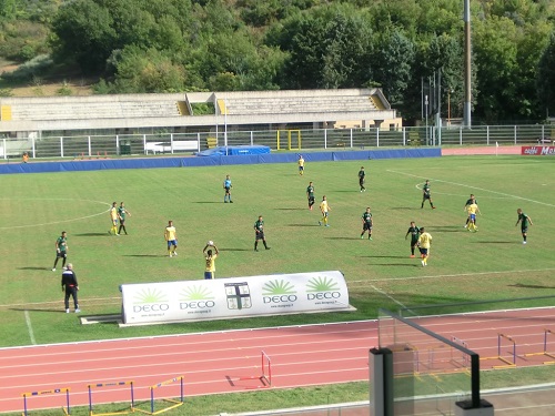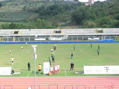 Dopo altre sostituzioni (Capuani per Genovese nel Chieti e Mariani per Cremona nella Fermana), alla mezzora ecco il poker con Marolda che, lasciato libero di battere a rete a centro area, coglie una pregevole doppietta al debutto con la maglia dei canarini. Al 34′ rigore sbagliato dalla Fermana con Omiccioli che spedisce il pallone a lato. Ormai c’è una sola squadra in campo e al 43′ lo stesso Omiccioli manda fuori di testa da buona posizione. La rete è però solo rimandata e sarà quella più bella della partita: allo scadere Russo in semirovesciata batte Zaccagnini e segna il 5-1 finale. Domenica prossima il Chieti è atteso alla difficile trasferta sul campo della rivelazione del campionato, l’Agnonese di Mister Alessandro Del Grosso.
