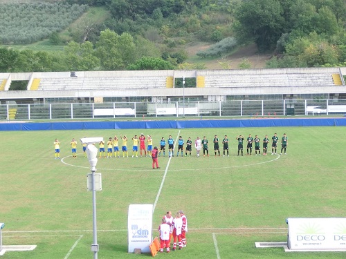 IL MATCH – Mister Mariani sceglie di schierare il Chieti con il 4-4-2, in attacco Faella e Alessandroni. Novità fra i pali con Zaccagnini dal primo minuto. Fermana con il neo acquisto Marolda inizialmente in panchina (entrerà nella ripresa segnando due pregevoli gol). Marchigiani in vantaggio al primo affondo al 2′: Russo mette un ottimo pallone al centro, Petrucci scatta in sospetto fuorigioco , tira e Zaccagnini riesce a fare il miracolo, ma la sfera torna in campo e sbatte su Zeetti finendo in rete. Al quarto d’ora Fermana vicina al raddoppio con Molinari che impegna severamente Zaccagnini con un gran tiro da fuori area. Al 25′ Faella cerca Alessandroni a centro area, l’attaccante si gira ma tira fra le braccia di Valentini. Al 33′ su angolo di Russo, Molinari mette a lato di testa. Si va al riposo sull’1-0 per la Fermana.