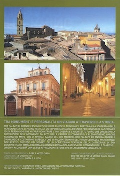«Il tema di quest’anno – hanno dichiarato il Sindaco di Chieti, Umberto di Primio e l’Assessore alla Promozione Turistica, Marco Russo – denominato “Storie comuni di uomini e donne non comuni” si è rivelato di grande stimolo per l’organizzazione dell’itinerario di visita teatino, infatti, sette attori, attraverso visite guidate drammatizzate, narreranno la storia di alcuni degli edifici più importanti del centro storico nonché la vita sociale di Chieti dal medioevo al ‘900».