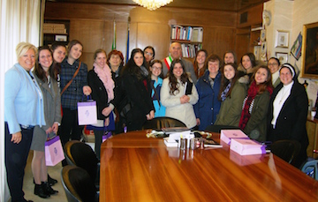 CHIETI – Il Sindaco di Chieti, Umberto Di Primio, ieri mattina, presso la sede del Comune di Chieti, ha ricevuto una delegazione di studentesse americane del liceo Nazareth di Filadelfia in visita a Chieti per una settimana, accompagnate dalla dirigente del Liceo Classico “G. B. Vico”, Giuseppina Politi, dalla dirigente dell’Istituto scolastico americano, dalla prof.ssa Valentina Tritapepe e da una rappresentanza di studentesse del liceo teatino.