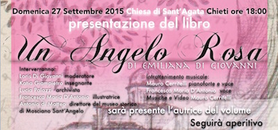 CHIETI – Domenica 27 settembre alle ore 18.00 a Chieti nella Chiesa di S. Agata sarà presentato il volume L’Angelo Rosa di Emiliana Di Giovanni, della teatina èDICOLA editrice.