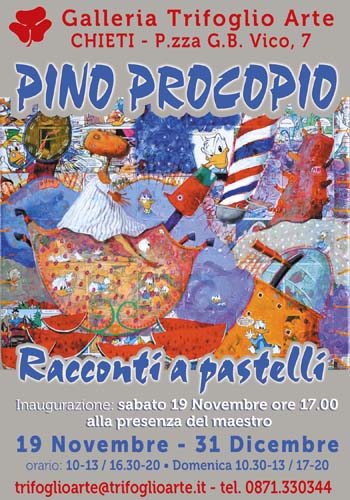 17.00, presso la Galleria Trifoglio Arte,Piazza G. B. Vico 7,a Chieti, sarà inaugurata la mostra “Racconti a pastelli” dell’artista Pino Procopio .