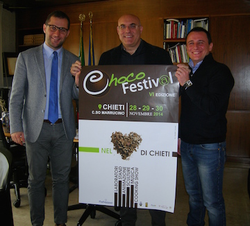 CHIETI – Il Sindaco di Chieti, Umberto Di Primio, e il Direttore Provinciale Confartigianato, Daniele Giangiulli, hanno presentato, questa mattina, nel corso di una Conferenza Stampa, la sesta edizione di Chocofestival che, dopo il successo dello scorso anno, con presenze di oltre 50 mila persone, tornerà a svolgersi nel centro storico di Chieti nei giorni 28, 29 e 30 novembre 2014, grazie all’organizzazione di Confartigianato Imprese Chieti, il contributo del Comune di Chieti e della Camera di Commercio di Chieti e il patrocinio della Regione Abruzzo.