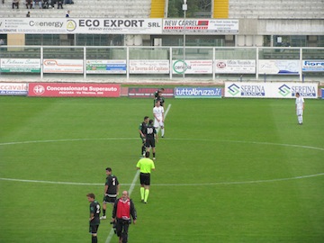 Vengono decretati ben 4′ di recupero e all’ultimo di questi arriva la clamorosa occasione per il Chieti di portare a casa il risultato pieno. Vitone da ottima posizione, in un’area avversaria affollatissima, piazza un tiro che fa la barba al palo. Forse era proprio destino che la palla non dovesse entrare. Il match dunque si conclude con un pareggio che lascia un po’ di amaro in bocca ai ragazzi di Vivarini, autori di un ottimo secondo tempo. C’è da dire la Sangiovannese ha mostrato un’ottima organizzazione di gioco, senza chiudersi e facendo la sua onesta partita. Il Chieti continua a veleggiare alto in classifica e domenica prossima l’attende l’impegnativa trasferta contro la capolista Carpi, banco di prova importante per testare quelle che potrebbero essere le reali ambizioni di una squadra che sta davvero sorprendendo tutti per il gioco che esprime ed i risultati finora raggiunti. Da segnalare l’ennesima manifestazione di protesta contro la tessera del tifoso dei tifosi neroverdi che hanno raggiunto la Curva Volpi in corteo prima dell’inizio della partita.