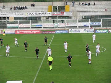 Al 31’ Fiore colpisce un altro clamoroso legno con una gran botta da fuori. Un minuto dopo episodio molto dubbio: sugli sviluppi di un calcio d’angolo molti sembrano vedere una mano di troppo di un difensore ospite, ma un indeciso Sig. Zappatore sorvola fra le proteste del pubblico. Al 37′ Vitone cerca il goal su punizione trovando la grande risposta di un attentissimo Vaccarecci.