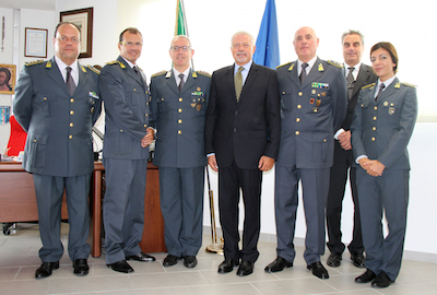 CHIETI – Il nuovo Questore di Chieti, Dott. Vincenzo Feltrinelli, si è recato oggi in visita al Comando Provinciale della Guardia di Finanza di Chieti ove è stato accolto, con gli onori di rito, dal Comandante Provinciale Col. t. ISSMI Vittorio Mario Di Sciullo. L’incontro, a cui ha partecipato una rappresentanza degli Ufficiali Comandanti di Reparto alla sede, si è svolto in un clima di cordialità e cortesia ed è stato anche l’occasione per illustrare l’organizzazione territoriale del Comando del Corpo ed i principali compiti istituzionali nell’ambito delle specifiche prerogative di polizia economico finanziaria, con particolare riferimento al contrasto all’evasione fiscale ed agli illeciti in materia di spesa pubblica nonché il contributo fornito nel concorso al mantenimento dell’ordine e della sicurezza pubblica.