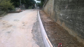 Ultimata la formazione del nuovo tratto di marciapiede, realizzato grazie allo spazio recuperato a ridosso del muro di contenimento stradale ultimato nei giorni scorsi, si stanno eseguendo lavori di scarificatura dei tratti stradali ammalorati e, quindi, nel corso d