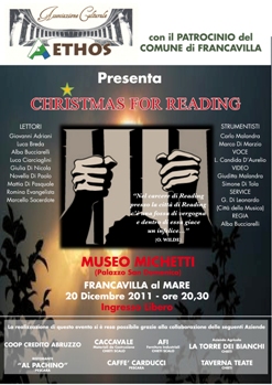 FRANCAVILLA AL MARE (CH) – Stasera il Museo Michetti di Francavilla alle ore 20.30 sarà teatro di un’importante e particolare iniziativa culturale, “Christmas for Reading”, presentata dall’associazione Culturale A Ethos con il Patrocinio del Comune di Francavilla. L’ingresso sarà libero.