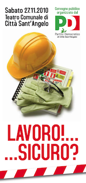CITTA’ SANT’ANGELO (PE) – Si svolgerà, sabato 27 novembre, dalle ore 9.00 alle ore 13.00, presso il Teatro Comunale di Città S. Angelo, il convegno,organizzato dal PD di Città S. Angelo , dal titolo “Lavoro!… Sicuro?”.