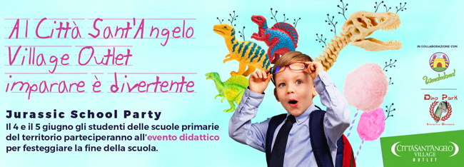 CITTÀ SANT’ANGELO (PE) – Si è concluso martedì, all’insegna del divertimento, l’anno scolastico per i piccoli studenti delle scuole primarie del territorio abruzzese. Il Città Sant’Angelo Village Outlet ha pensato di festeggiare la ricorrenza in grande, omaggiando nella giornate del 4 e 5 giugno circa seicento bambini delle scuole primarie del territorio con il “Jurassic School Party”, un evento capace di combinare insieme divertimento e apprendimento.