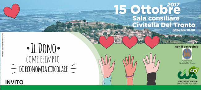 L’AQUILA – LA Confederazione Agricoltori Italiana di l’Aquila-Teramo il 15 ottobre a Civitella Del Tronto vuole ringraziare tutte le persone e le imprese che nel periodo delle calamita’ hanno alleviato le sofferenze delle nostre aziende agricole e della popolazione colpita nel territorio di Teramo e L’Aquila, alla presenza delle istituzioni locali, regionali e dirigenza regionale Abruzzo-Puglia e nazionale della confederazione.