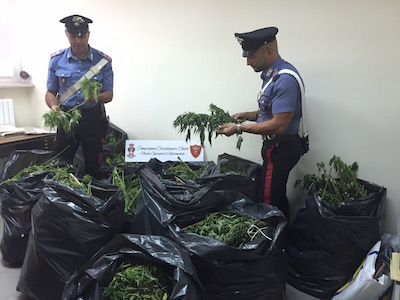 Il peso complessivo delle coltivazioni rinvenute e sequestrate è di circa 120 kg lordi, dalle quali poi sarebbe stato possibile ricavare, tra foglie ed infiorescenze, una percentuale stimata di circa il 10%, ovvero intorno ai 10 kg, di stupefacente commerciabile, per un valore di mercato quantificabile nell’ordine dei 25000 o 30000 euro. Le piante, nel giro di un paio di settimane sarebbero state pronte per la raccolta e la successiva vendita, ma l’intervento dei militari dell’Arma ha vanificato i progetti di guadagno di M.G., il quale invece si è ritrovato agli arresti domiciliari.