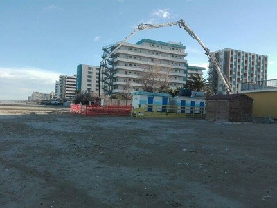 “A seguito di una segnalazione di un cittadino, abbiamo inoltrato una richiesta di accesso agli atti relativa alla realizzazione di uno stabilimento balneare a Montesilvano, nei pressi dei grandi alberghi. Dalle foto inviateci si può vedere chiaramente una piattaforma in cemento e, guardando verso il mare, sulla sinistra, delle cabine con un serbatoio e dietro un casotto in legno. Nelle foto si può vedere anche il cartello, non di facile lettura, relativo ai dati della autorizzazione a costruire.